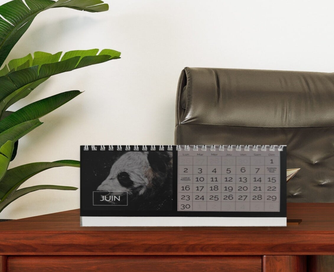 Retrouvez 12 de mes réalisations animalières dans un calendrier mural ou de bureau.