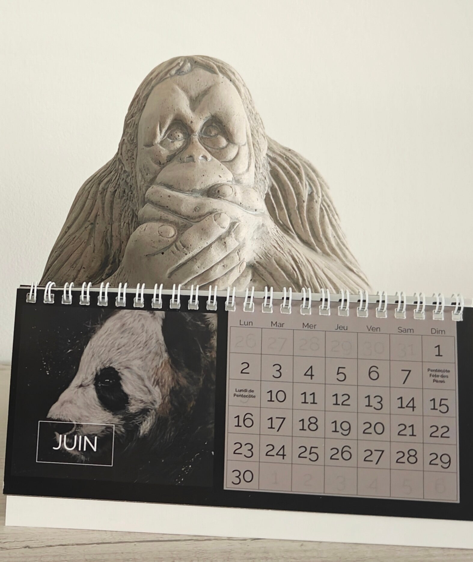 Retrouvez 12 de mes réalisations animalières dans un calendrier de bureau. 21x11cm