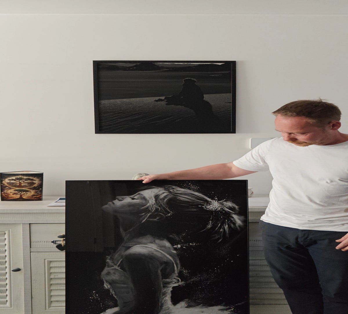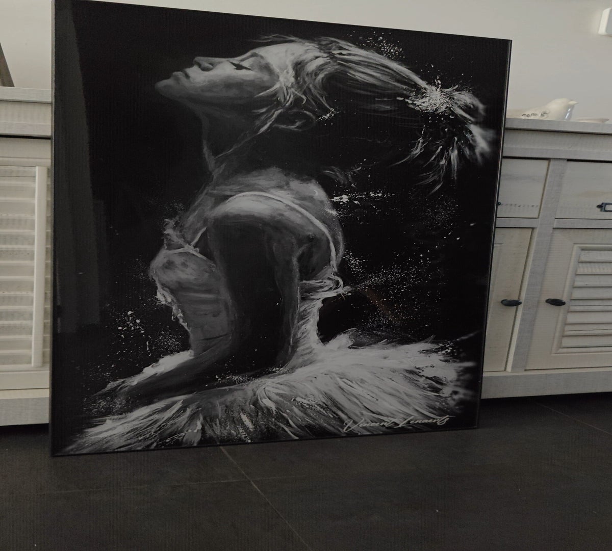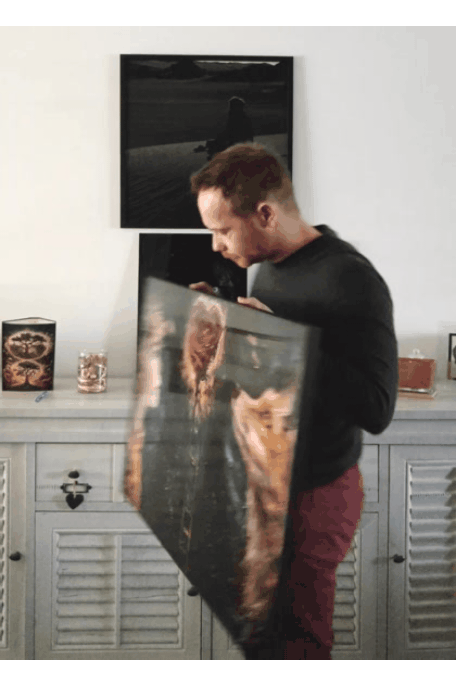 Retrouvez une édition sous plexiglas avec encadrement en bois veiné.